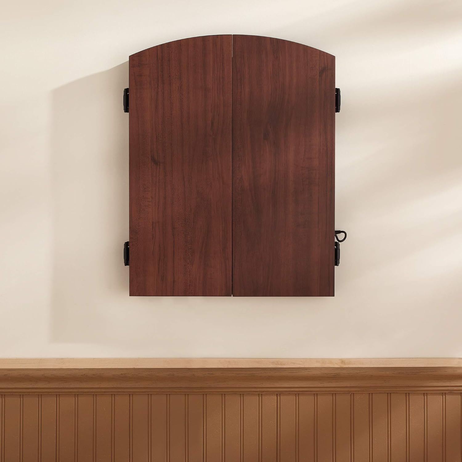 • Fat Cat Mercury Electronic Dartboard, Built In Cabinet Doors With Integrated Scoreboard, Dart Storage For 6 Darts, Dual Display In Two Colors, Compact Target Face For Fast Play