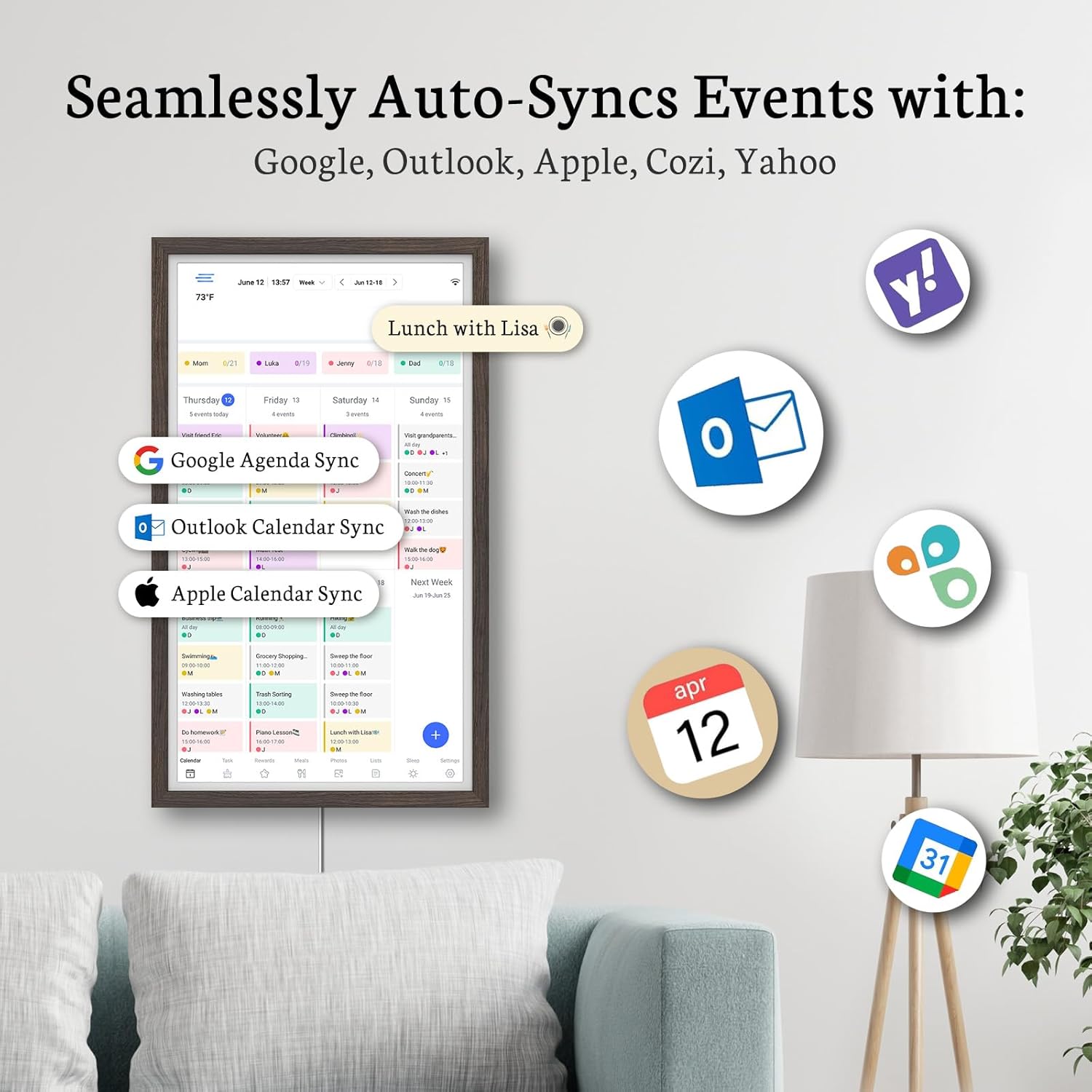 • Smart Calendar: Syncs with Google Calendar, iCloud Calendar, Outlook Calendar, Cozi Calendar, and Yahoo Calendar, ensuring that all family members stay up-to-date with the latest schedules and events.