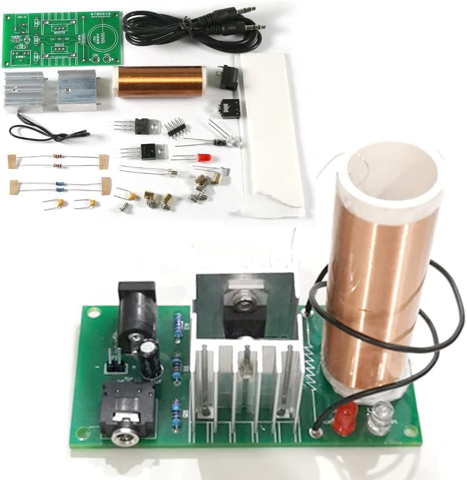 When power is applied within the 15-24V DC range (many find 18V or 20V to work well), the transformation from quiet components to miniature lightning storm is immediate and impressive. Electric arcs leap from the top coil, and nearby fluorescent tubes glow without contact—just by being in the near field. Music playback is more experimental: faint but audible, especially with the coil held near a non-contact speaker. Volume is low compared to standard speakers, but the novelty of playing songs through plasma arcs outweighs that limitation for most.